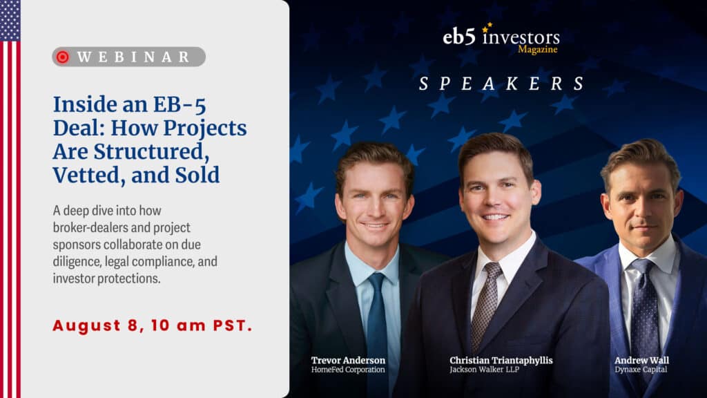 During a recent Eb5investors.com webinar, industry professionals Andrew Wall, a broker-dealer from Dynaxe Capital, Trevor Anderson from regional center HomeFed Corporation, and EB-5 attorney Christian Triantaphyllis from Jackon Walker law firm, emphasized the importance of understanding a project’s financial foundation in relation to its eligibility as an investment that meets the program’s requirements.