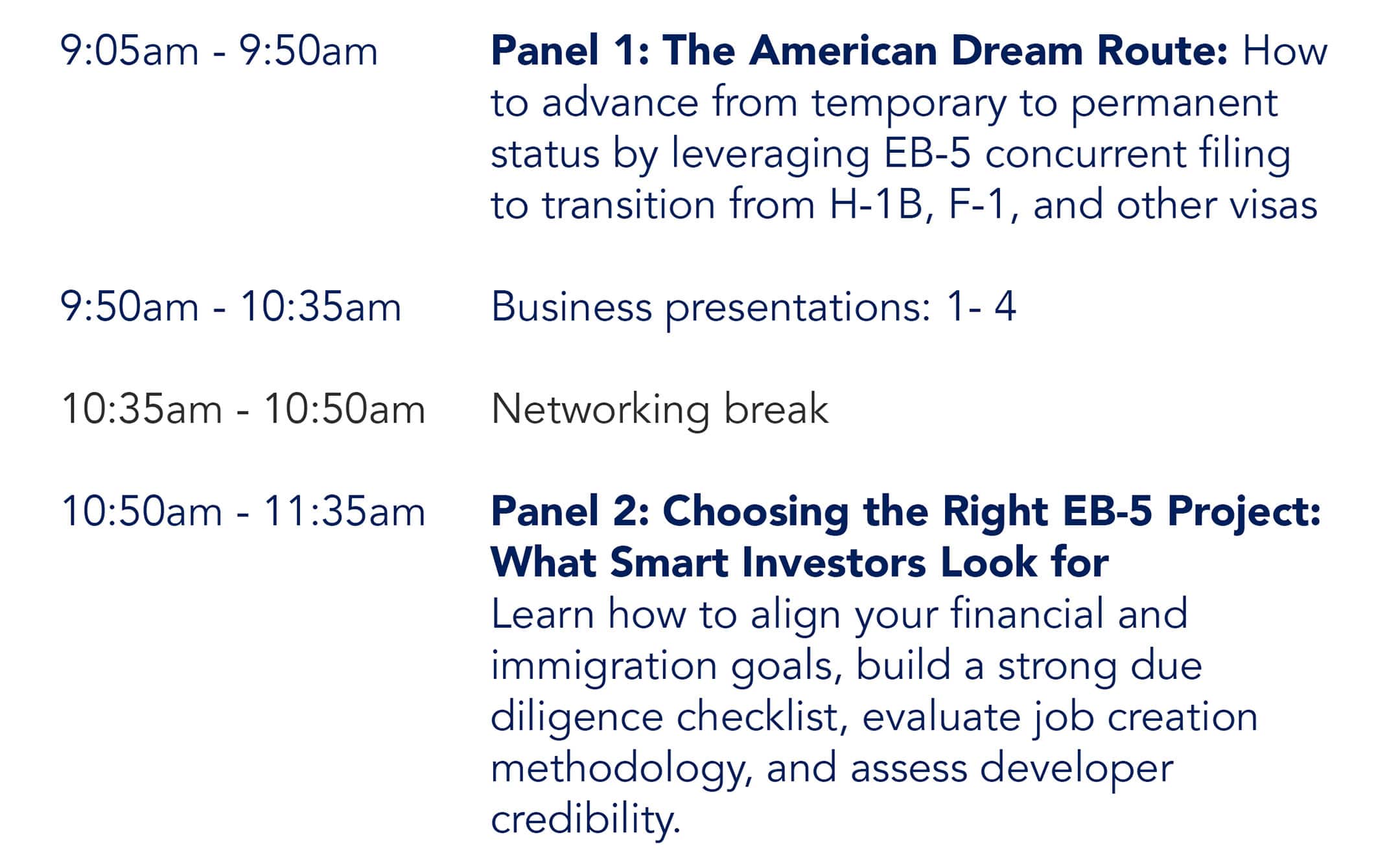 This one-day, high-impact event brings together top immigration attorneys, EB-5 project sponsors, financial experts, and investors.